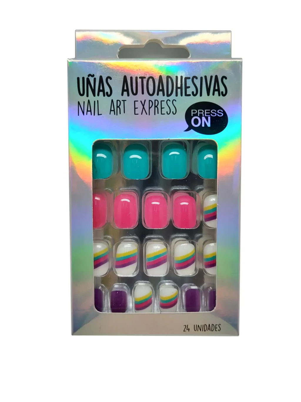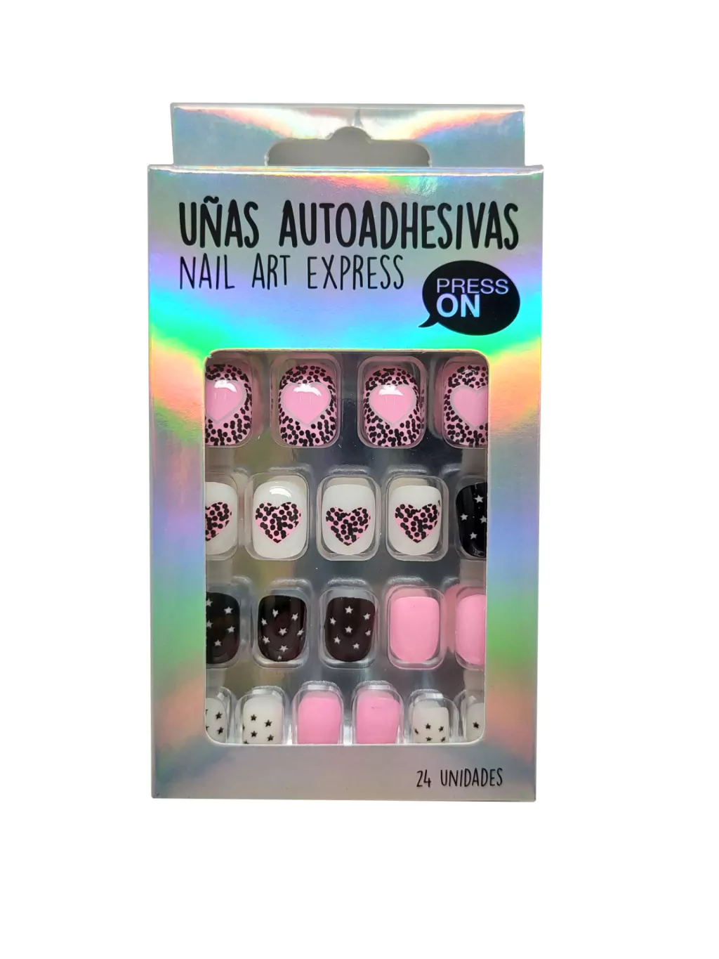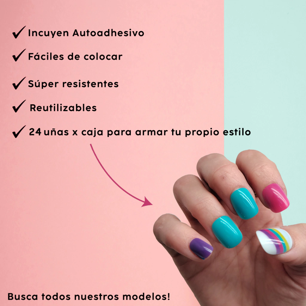 Cada set contiene 24 uñas autoahesivas de distintos tamaños.
